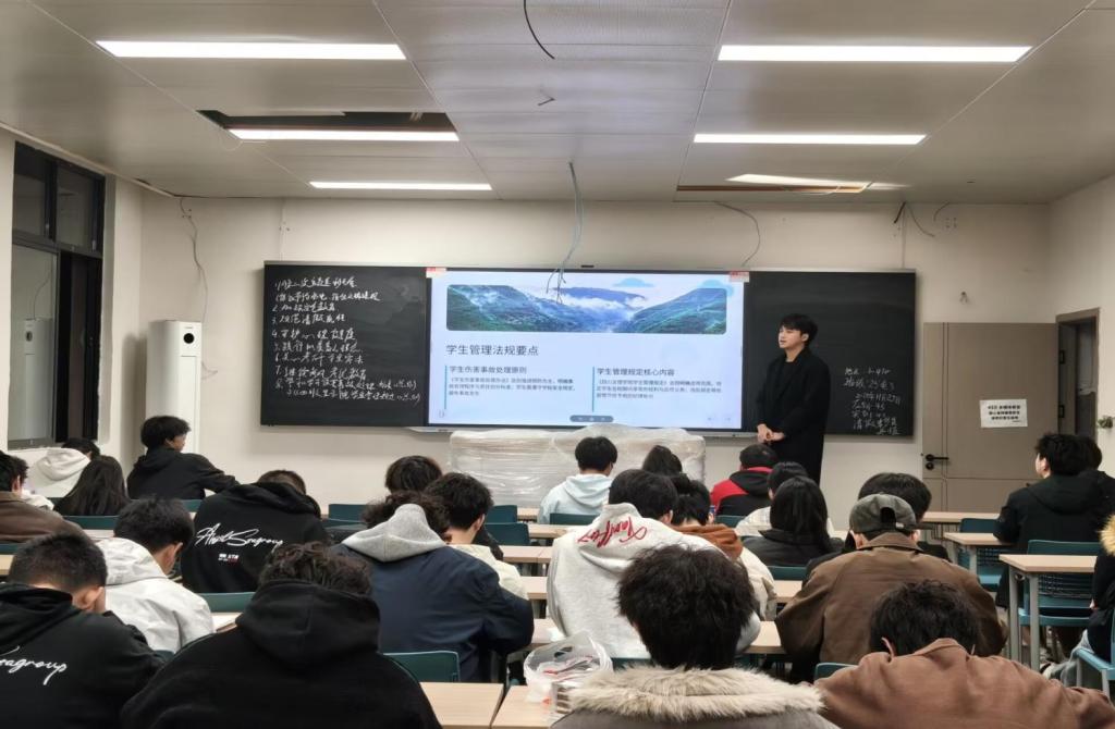 各班班长以图文讲解与场景分析相结合的方式,向学生倡议节约水电资源,强化校园文明建设。并结合冬季水电消耗特点,强调冬季节能管理知识与防冻、安全用电注意事项,引导广大青年践行绿色发展理念。同时,重申校园卫生管理规定,明确要求学生不随地吐痰、分类投放生活垃圾,保持教室、宿舍等公共区域整洁,共同保护校园自然与人文环境,为文明校园与绿色校园建设注入力量。