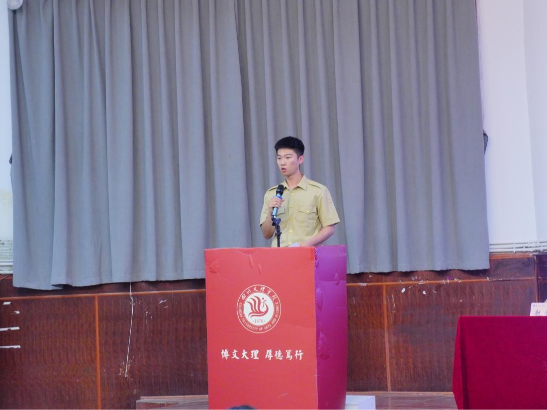 新生代表2025级4班退役复学的邹深缘与同学们分享自己在军营生活中所学习到的经验。他表示这些在军营里的宝贵经历不仅仅让他在身体上取得卓越进步,更让他在精神上得到了极大提升,因此,他提出军训不仅仅是体能上的锻炼,更是一次千载难逢的心灵洗涤。他相信新同学们在经过军训的洗礼之后,一定能在心里埋下一颗不畏艰险,奋勇向前的种子。同时表明自己的学习态度,将继续积极进取努力学习,努力成为一个有理想,有才干,能奋斗,能吃苦的新时代青年。